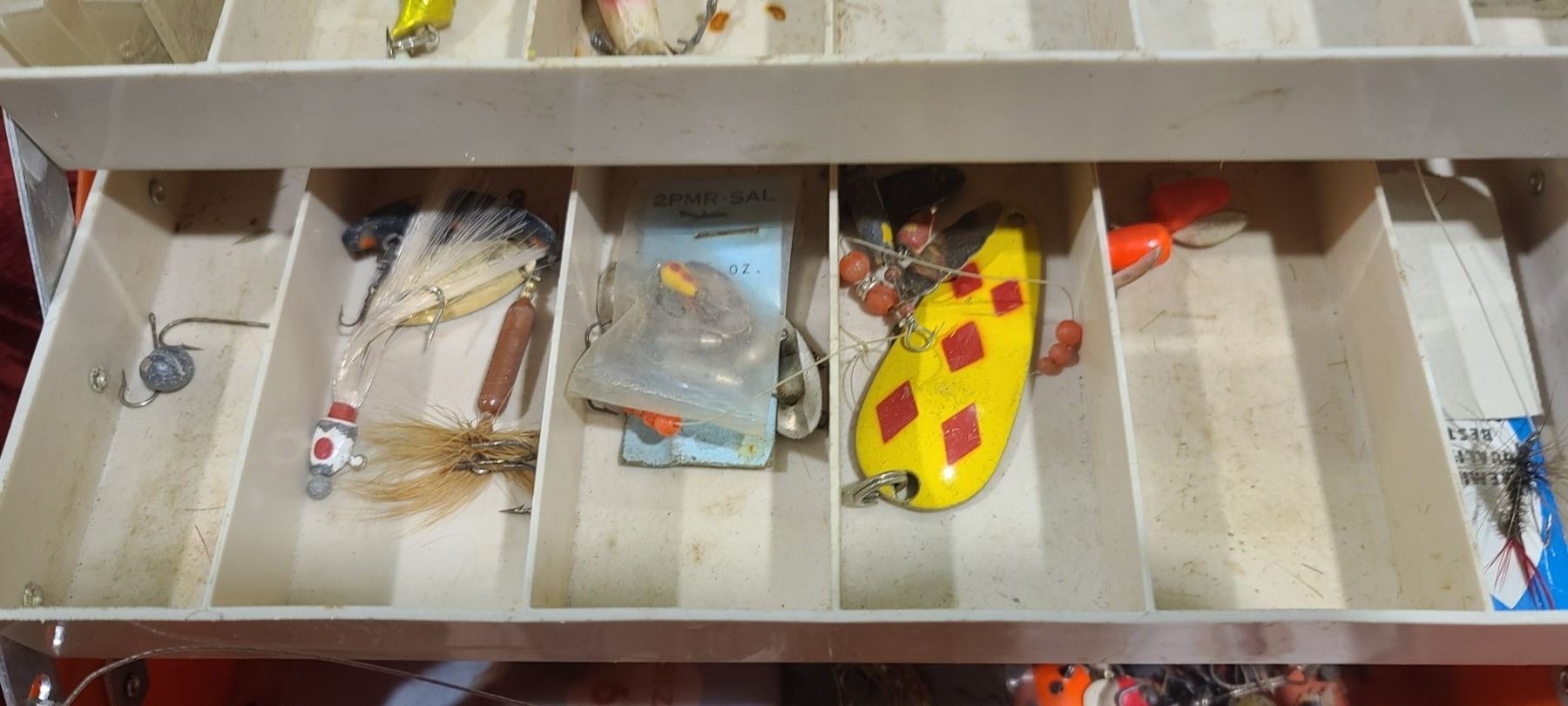 TACKLE BOX WITH LURES, JIGS AND FLIES