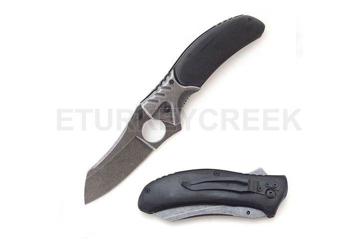 TACTICAL SPRING ASSIST KNIFE 4.5" CLOSED, STAINLESS STEEL STONE WASH BLADE, BLACK WOOD HANDLE POCKET CLIP 4.5" CLOSED 3.25" BLADE