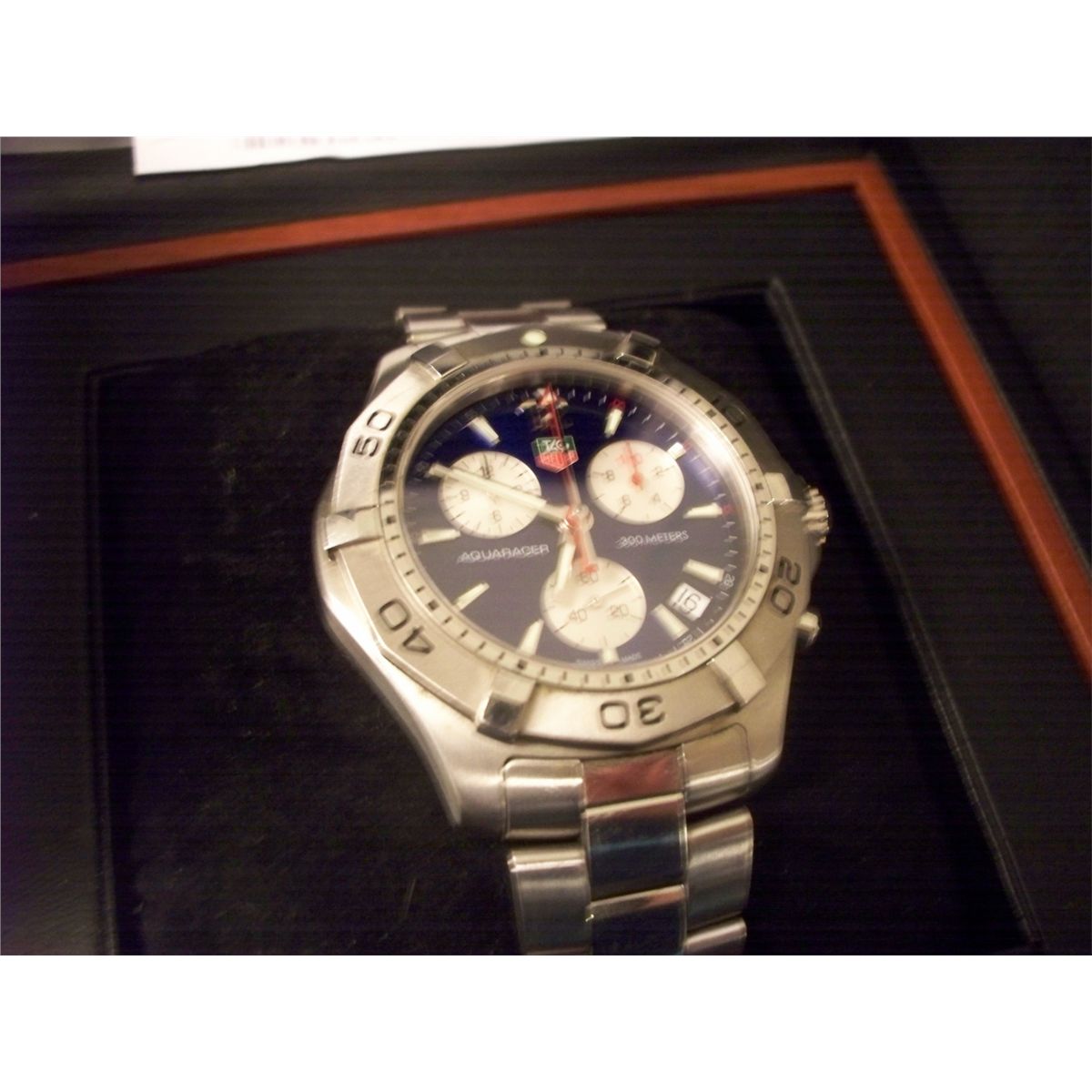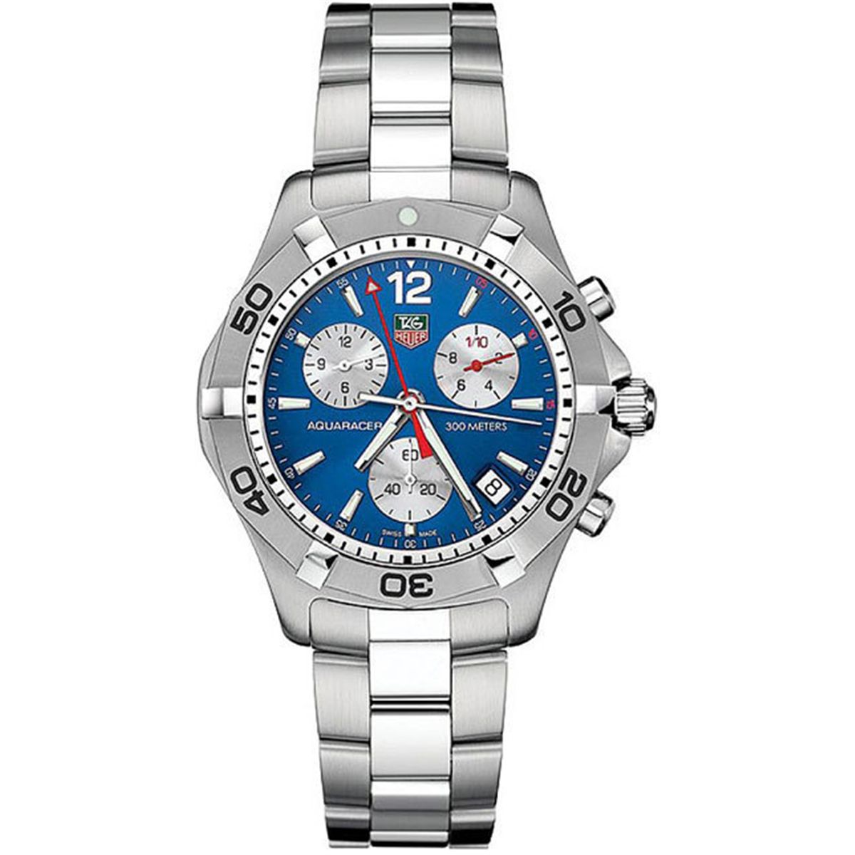 TAG HEUER AQUARACER CAF1112.BA0803 CHRONOGRAPH QUARTZ PRE OWNED BLUE MENS WATCH. STAINLESS STEEL SWISS QUARTZ MOVEMENT. 300M (1000 FT) (suitable for swimming, snorkeling, skin diving, diving)