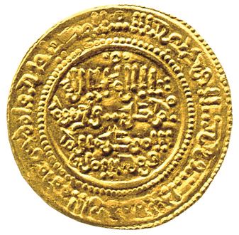 TAIFAS AFTER THE ALMORAVIDS: Anonymous, 1146-1155, AV dinar (3.62g), NM, AH(5)40, A-405, W-615, emergency issue during the chaotic period at the end of Murabitid (Almoravid) power in Spain, EF, RRR. The Almoravid kingdom rapidly collapsed after the death of 'Ali b. Yusuf in AH537, vanishing just four years later. From 539 until the 550s, local Spanish dinars were struck in Almoravid style, some anonymous, and with or without a mint name (and at Murcia until 567).