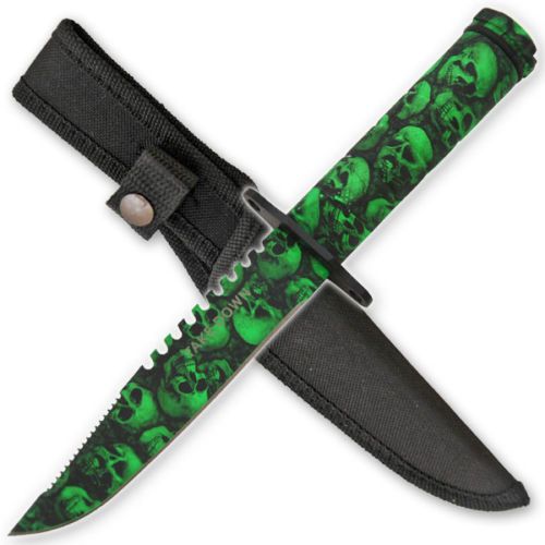 TAKEDOWN Z-SLAYER GREEN SKULL SURVIVAL KNIFE WITH SHEATH