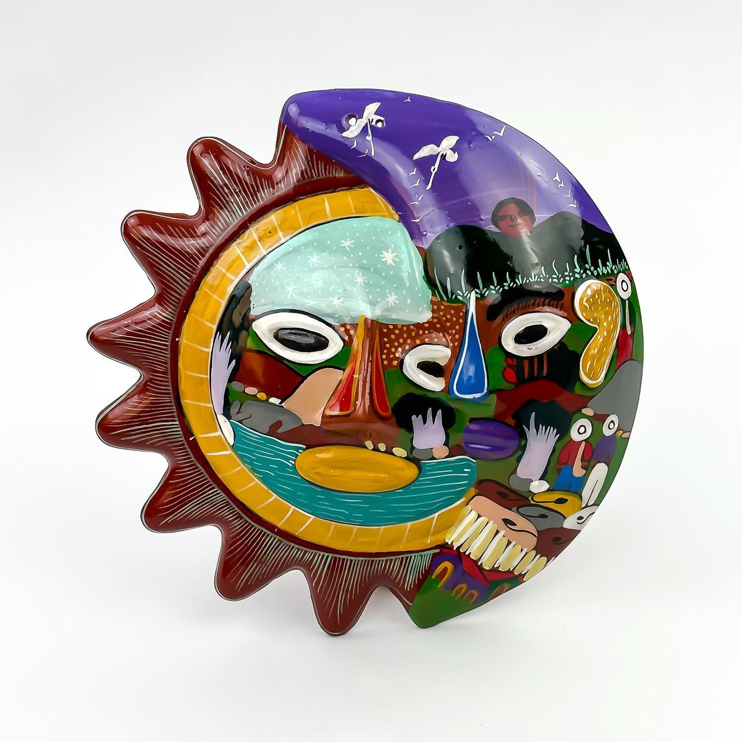 #8329 - HAND CRAFTED SUN & MOON FOLK ART POTTERY WALL DECOR. MEASURES: 9” (23 CM) DIAMETER***ITEM(S) LOCATED IN LETHBRIDGE ALBERTA. FREE TRANSPORT TO EDMONTON OFFICE AVAILABLE FOR THIS AUCTION. WORLDWIDE SHIPPING IS AVAILABLE FOR ALL ITEMS