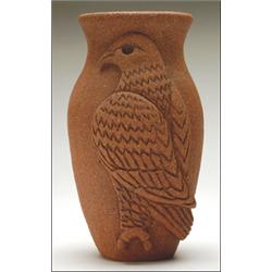 A Six-Nations ceramic vase decorated with an eagle in relief, signed and titled, 9.5" - 24.1 cm.