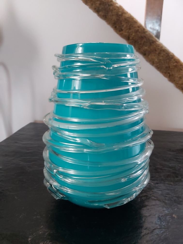 TALL BLUE 16" VASE ~ VERY PRETTY AND DIFFERENT!