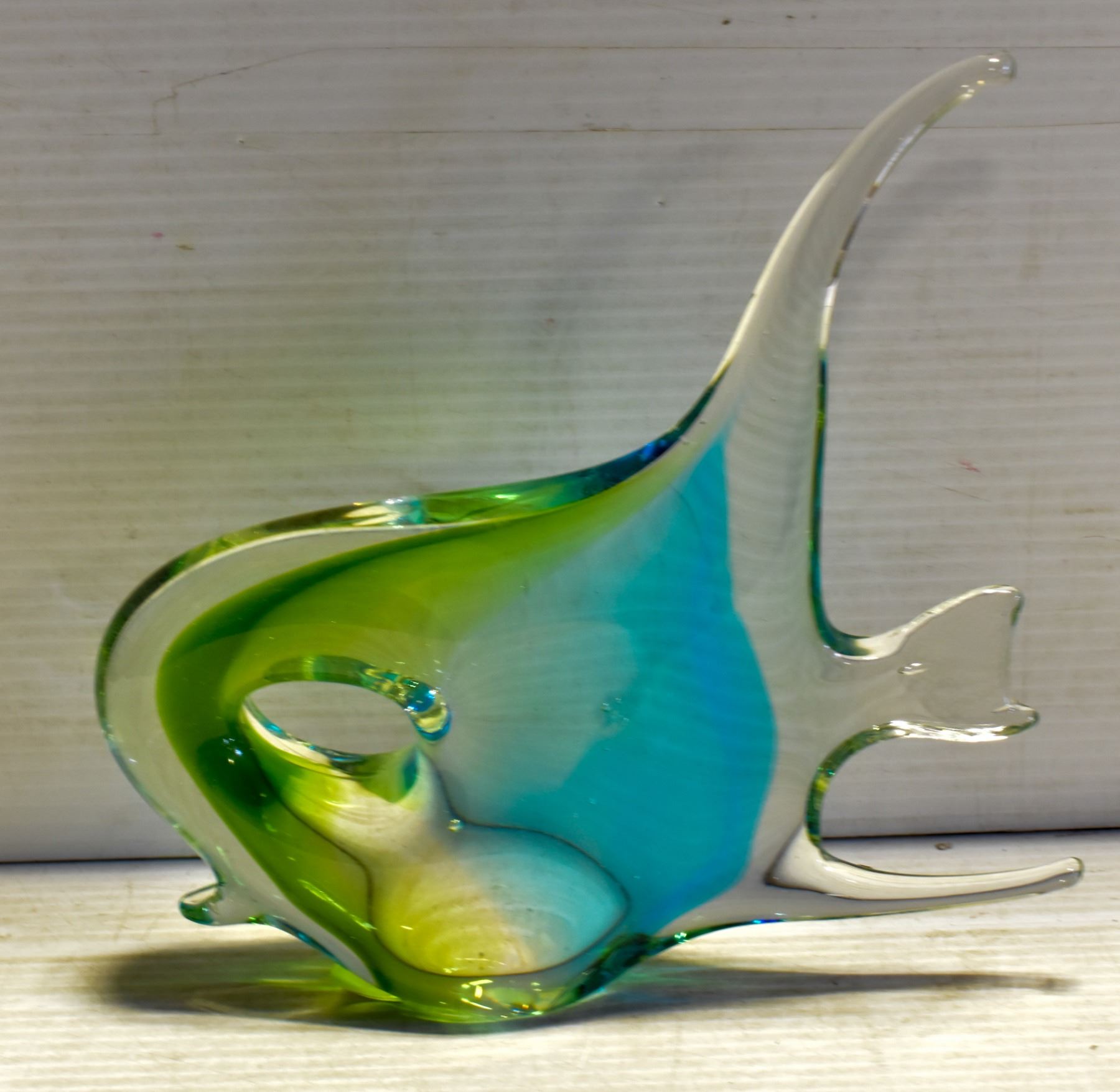 TALL BLUE AND GREEN ART GLASS FISH