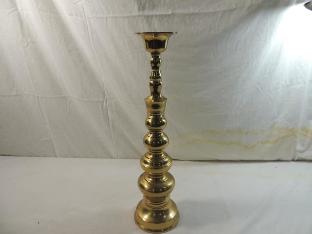 VINTAGE CANDLE STICK TALL CANDLE STICK BRASS AS SHWON SEE PHOTO FOR MORE DETAILS.
