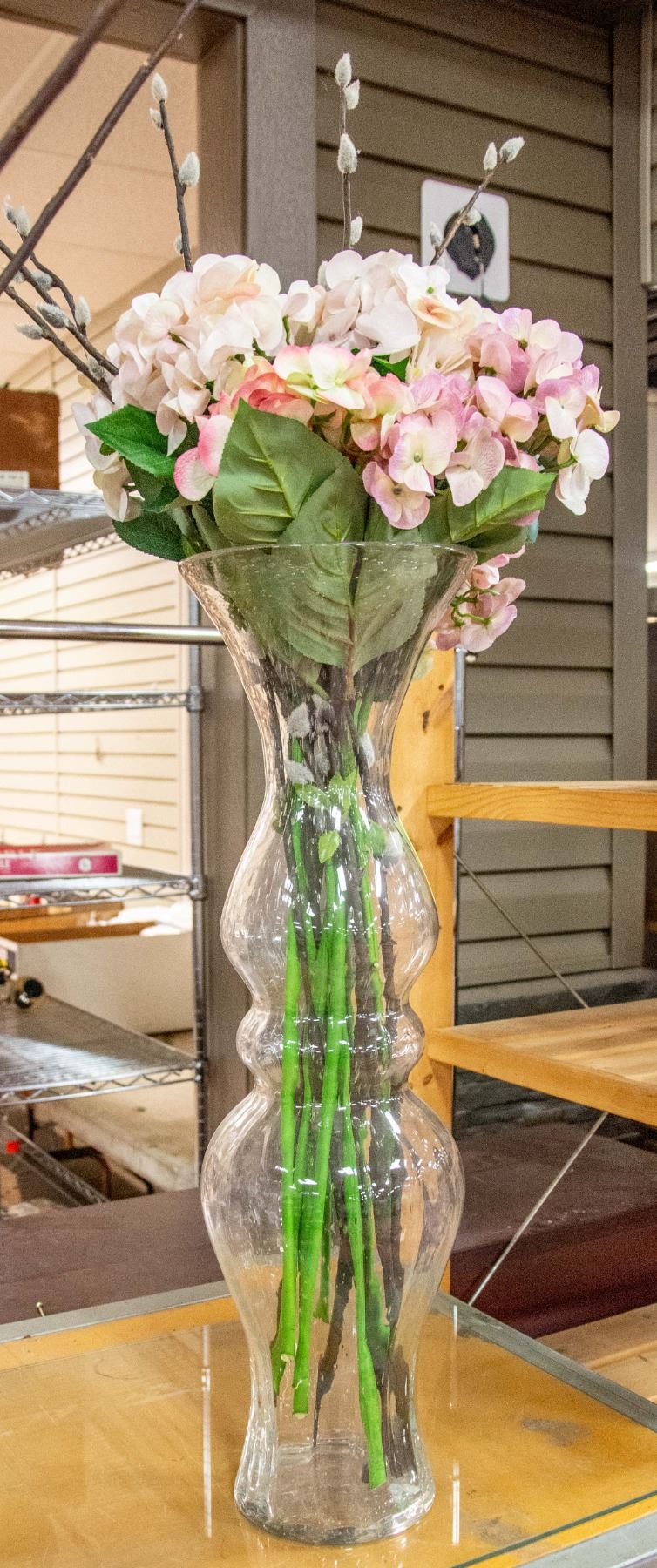 FULL OF DECORATIVE SILK FLOWERS AND PUSSY WILLOWS