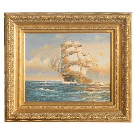 "TALL SHIP" - ORIGINAL HAND PAINTED OIL ON CANVAS - PROFESSIONALLY FRAMED - IMAGE 16x 20" - FRAMED 24x 28"