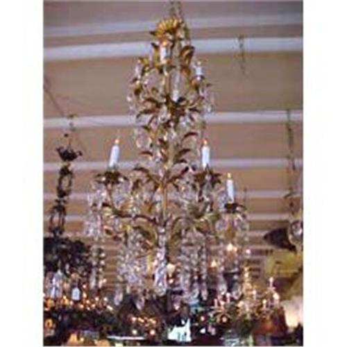 <tr><td>Title:TALL TOLE AND CRYSTAL CHANDELIER</td></tr>