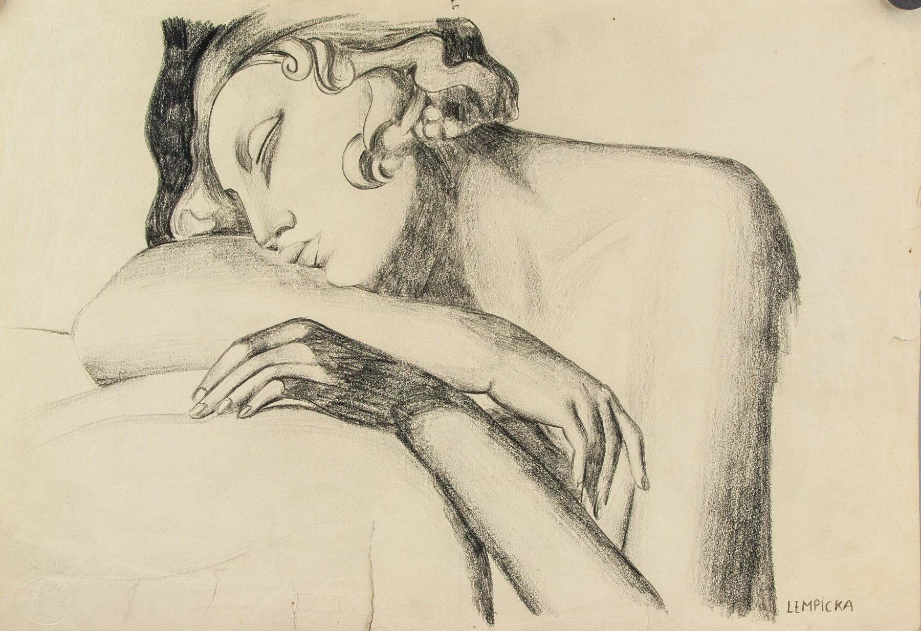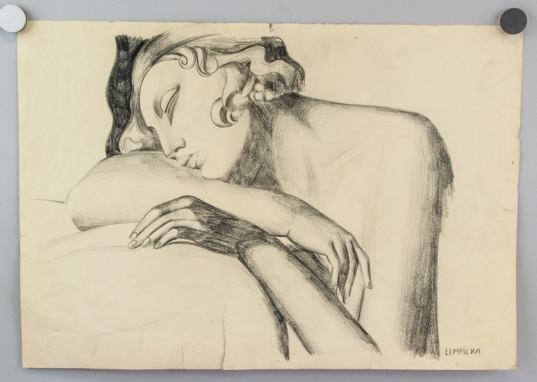 Graphite on paper. Featuring sketch of a woman. Signed and attr. Tamara de Lempicka (French-American, 1898-1980). Gallery seal and stamped on verso. 13 x 18.7 in. (33 x 47.5 cm). Tamara de Lempicka was a Polish painter known for her distinctive Cubism-influenced Art Deco style. In her many portraits of Hollywood stars and European aristocracy, her hallmark was the use of simplified tubular and angled forms as a means to render the figure and space, lending everything in her paintings the same tactile, metal-like quality. “My goal is never to copy,” the trailblazing artist declared, instead promising to “create a new style, clear luminous colors and feel the elegance of the models.” Born on May 16, 1898 in Warsaw, Poland (then part of the Russian Empire) to a wealthy family, she fled to Paris during the 1917 Russian Revolution. While living in the French capitol throughout the 1920s, she became an integral part of the bohemian scene and was acquainted with Pablo Picasso, Jean Cocteau, and André Gide. Today, her work is collected by many celebrities, including Madonna, Jack Nicholson, and Barbara Streisand. Lempicka died on March 18, 1980 in Cuernavaca, Mexico. PROVENANCE: Upper New York estate
