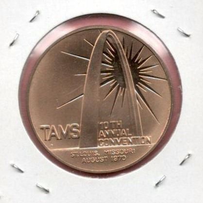 TAMS 10TH ANNUAL CONVENTION ST. LOUIS, MISSOURI AUGUST 1970/Token AND Medal Society EXONUMISTS ORGANIZED NOV. 19, 1960 UNC Medal (there are no marks on this Medal, any inperfection in this photo is the film in the holder)