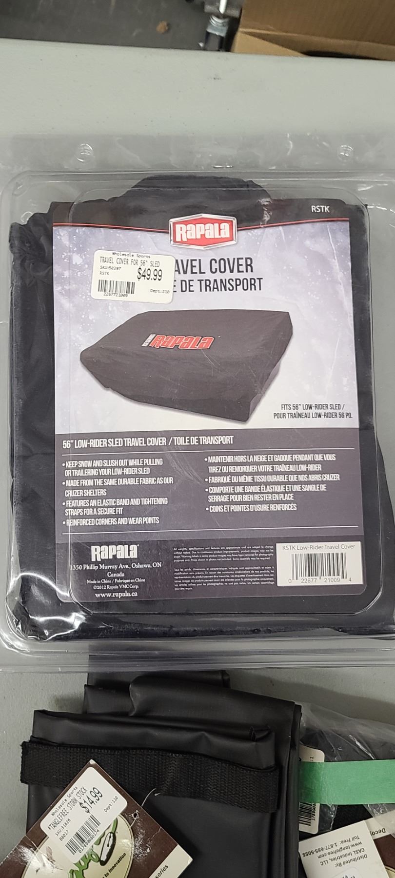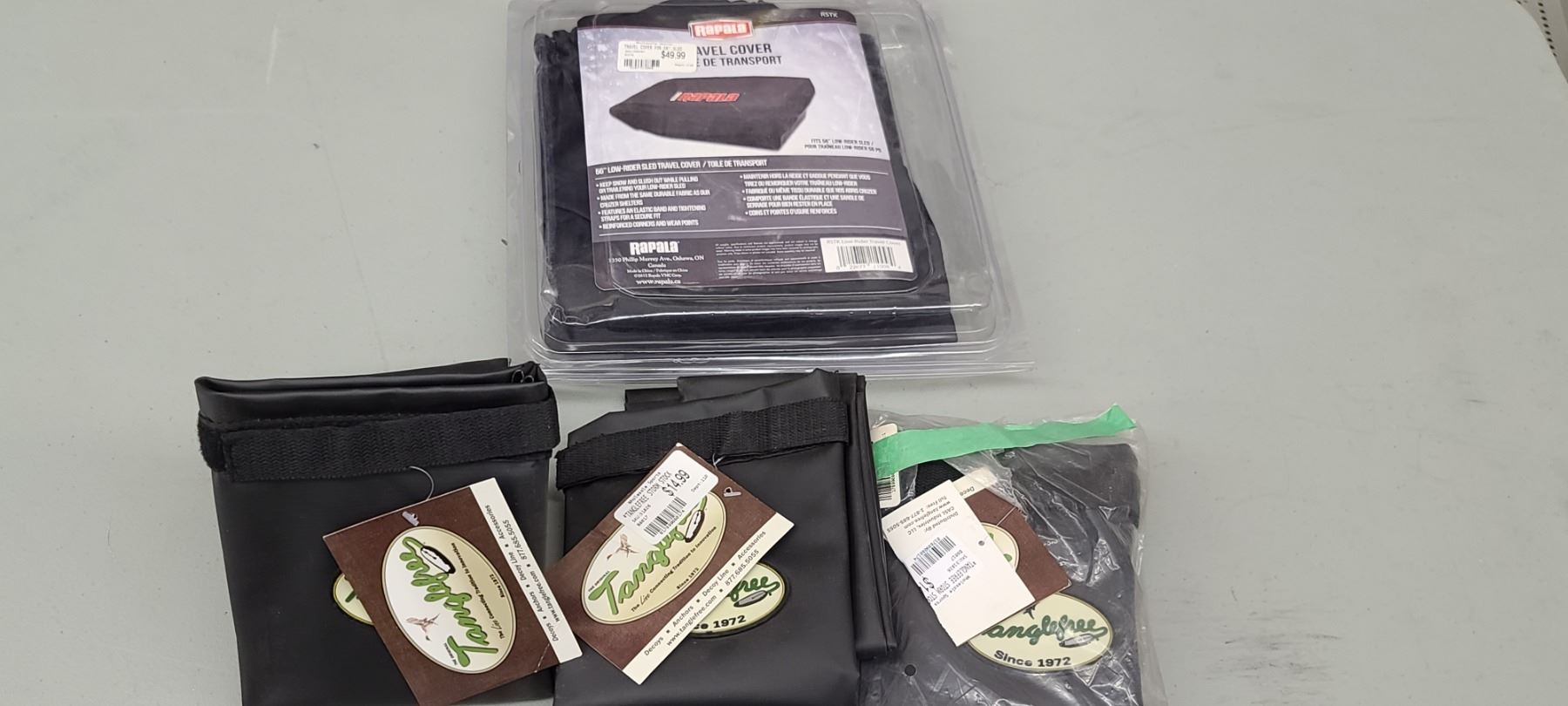 TANGE FREE STORM SOCK QTY 3, RAPALA TRAVEL COVER FOR 56" SLED $85