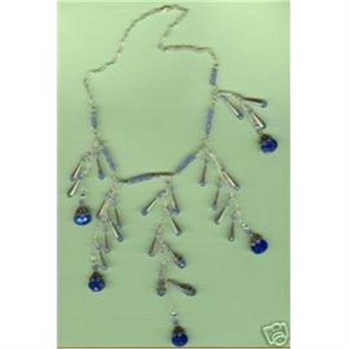 TANZANITE AND LAPIS LAZULI STERLING SILVER DANGLING NECKLESS.