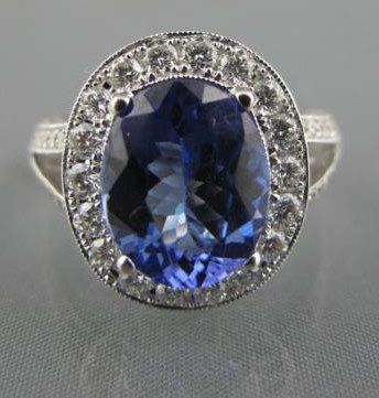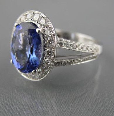 Tanzanite: Oval, 3.20ct (approx.) Medium blue with a slight purple hue