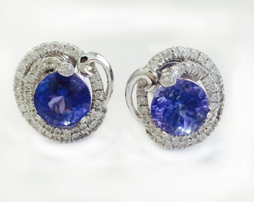 TANZANITE OVAL 6.35CT, 14K W/G EARRING 5.98GRAM / DIAMOND 0.98CT