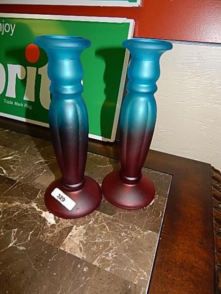TAPER CANDLE HOLDERS - ART GLASS - 2 PER LOT
