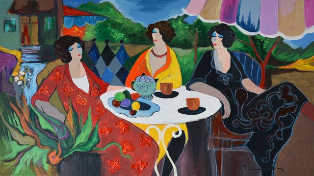 TARKAY ** SPRING AFTERNOON ** SERIGRAPH. Artist: Itzchak Tarkay (b. 1935 - 2012) - Title: Spring Afternoon - Medium: Hand Embellished Serigraph on Wood - Signature: Hand-signed by the Artist - Limited Edition: Open - Image Size: Approximately 24 ½ inches x 37 inches - Framed: Unframed - Details: This work comes with a Certificate of Authenticity - Biography: Itzchak Tarkay was born in 1935 in Subotica on the Yugoslav Hungarian border. When he was only nine years old, the Nazis sent Tarkay to Mathausen concentration camp. After the war, he returned home and developed an interest in art. While still at school in Subotica, he won a prize for excellence in painting. - In 1951, Tarkay received a scholarship to the Bezalel Art Academy in Jerusalem, where he studied for a year before having to leave due to difficult financial circumstances at home. In order to continue his scholarship, he was allowed to study under the artist Schwartzman until his mobilization to the Israeli army. After returning to the familiar environment of Tel Aviv, Tarkay enrolled in the Avni Institute of Art, which he graduated in 1956. His teachers there were Mokady, Janko, Schtreichman and Sematsky. Tarkay has since exhibited extensively both in Israel and abroad, and his works can be found in many public and private collections. - Tarkay's originals have sold for more than $120,000.00. - Warranty: Item GUARANTEED to be as described