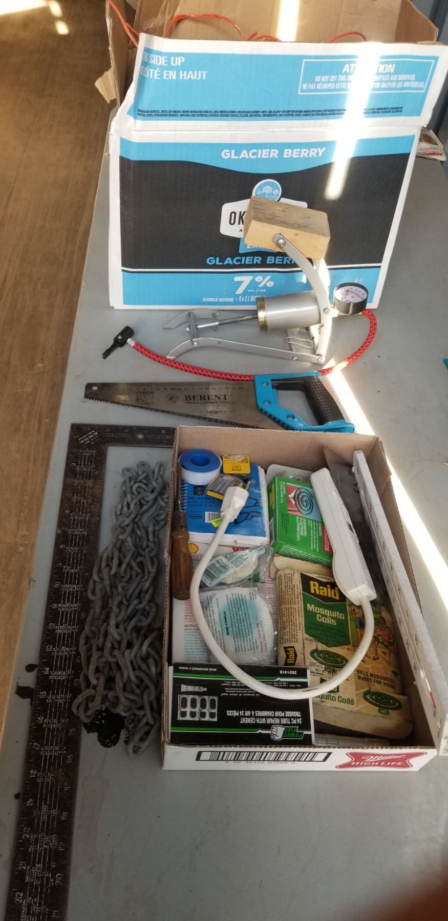 TARP, AIR PUMP, ROPE, SQUARE, SAW, OTHER MISC