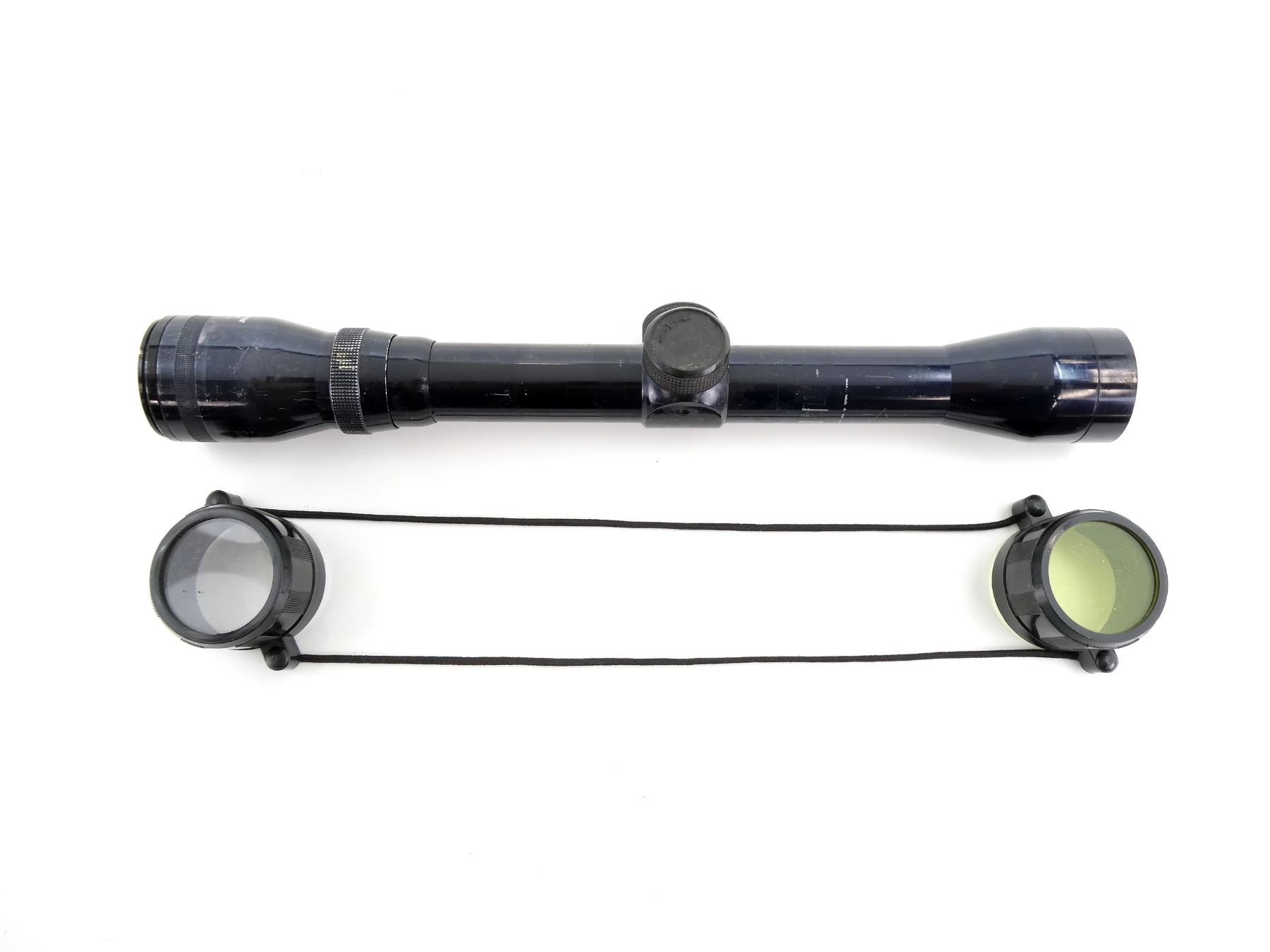 (1) CLEAR OPTICS, DUPLEX RETICLE, 1" TUBE DIAMETER, WORKING MAGNIFICATION RING, WINDAGE & ELEVATION KNOBS TURN, WITH LENS COVERS, SCOPE SHOWS WEAR & TEAR / USE MARKS. SEE PHOTOS.