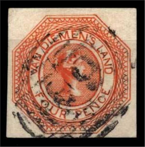 1853-54 no watermark Plate I, First State 4d bright red-orange (SG 5) used single from position 8, large margins, almost complete strike of numeral cancel, light crease at top left corner, fine colour and appearance, BPA Cert (1975) ex Robinson.