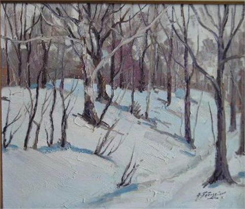 TATOSSIAN, Armand, R.C.A., 1948- . "Dorion". Huile sur toile, signée. Signée et titrée verso. Oil on canvas, signed. Signed and titled verso. 20" x 24" - 50.8cm x 61cm.