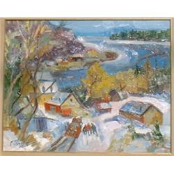 TATOSSIAN, Armand, R.C.A., 1948- . "Les Éboulements". Huile sur toile, signée. Titrée verso. Oil on canvas, signed. Titled verso. 24" x 30" - 61cm x 76cm. $1800/2400
