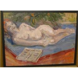 TATOSSIAN, Armand, R.C.A., 1948- . "Lying Nude". Huile sur toile, signée....