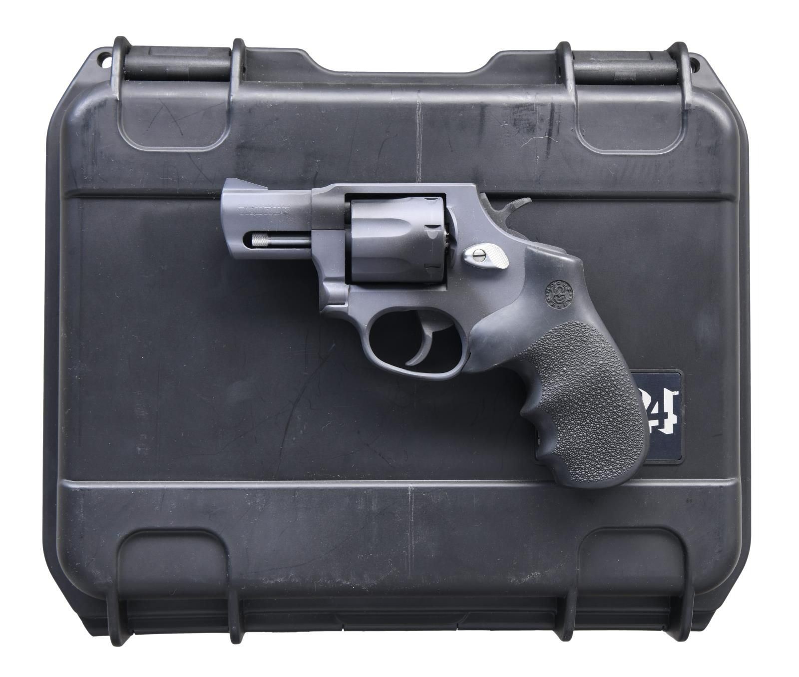 Cal. 357 Mag. S# GW834694. Bbl. 2". Serrated ramped blade front sight. Fixed rear sight. Matte gray finish. 7-shot cyl. Black fingergroove Hogue grips. UNATTACHED ACCESSORIES: matching numbered factory box w/ two speedloaders, compass, factory paperwork, six AA batteries, CRKT survival knife, empty Hornady Critical Defense ammo box, 550 Paracord bundle, flashlight, 3 Brite Strike lights, Zippo orange lighter & space blanket. CONDITION: all aspects near excellent w/ some light operational & handling wear. PROVENANCE: The Collection of Gun Sport Ltd owned by Jon R. Thomas. (23-4578/MJC). MODERN. $400-600.