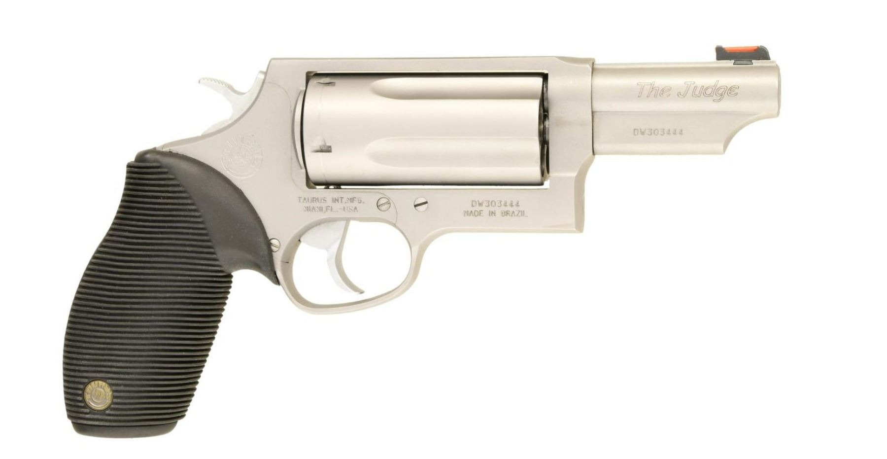 Cal. 45 Colt/410 3". S# DW303444. Bbl. 3". Fiber optic front sight. Fixed rear sight. Stainless finish. Grooved black grips w/ Taurus medallions. CONDITION: metal & grips show some light handling & operational wear. Very good bright bore. PROVENANCE: The Collection of Gun Sport Ltd owned by Jon R. Thomas. (23-3993/MJC). MODERN. $400-700.