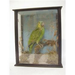 TAXIDERMY, a paraqueet, in a natural setting, glazed case, 40cm x 35cm  30-50...