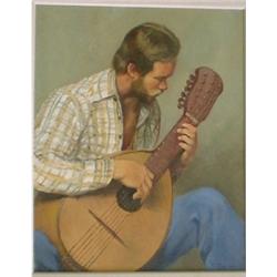 TAYLOR, Frederick Bourchier, R.C.A., 1906-1987. "Bandola Player". Huile sur toile, signée. Signée, titrée et datée "1979" verso. Oil on canvas, signed. Signed, titled and dated "1979" verso. 20" x 16" - 50.8cm x 40.6cm. $500/600