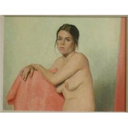 TAYLOR, Frederick Bourchier, R.C.A., 1906-1987. "Half Length Seated Nude". Huile sur toile, sig...