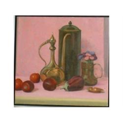 TAYLOR, Frederick Bourchier, R.C.A., 1906-1987. "Nature Morte". Huile sur toile, signée. Signée, titrée et datée "1977" verso. Oil on canvas, signed. Signed, titled and dated "1977" verso. 20" x 21" - 50.8cm x 53.3cm. $600/800