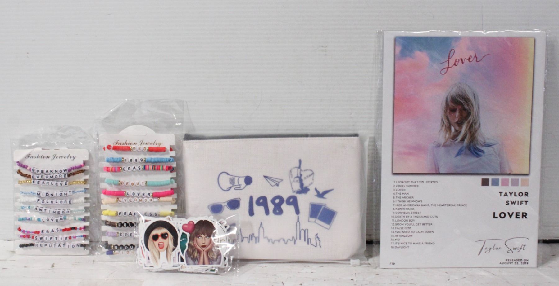 MAKEUP/PENCIL BAG, 6 8X12 INCH POSTER PRINTS, 21 DIFFERENT BRACELETS, AND 100 DIFFERENT STICKERS