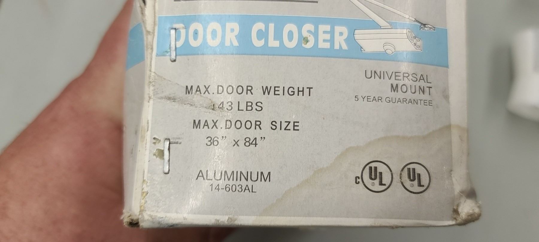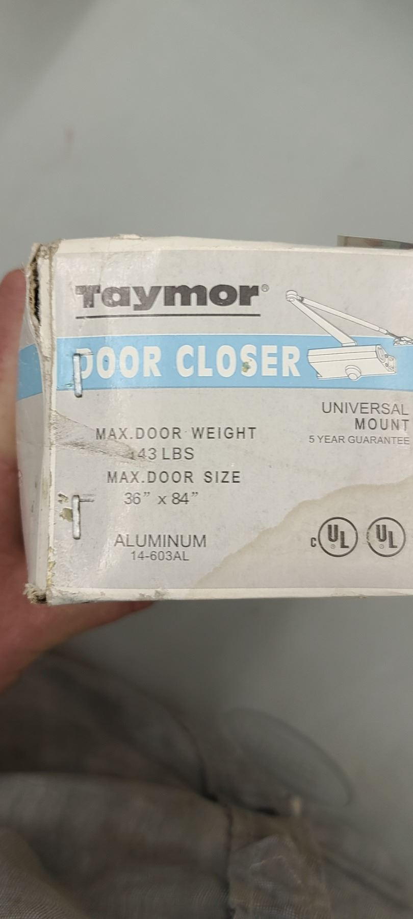 TAYMOR DOOR CLOSER UNIVERSAL MOUNT MAX WEIGHT 143LBS MODEL 14-603AL