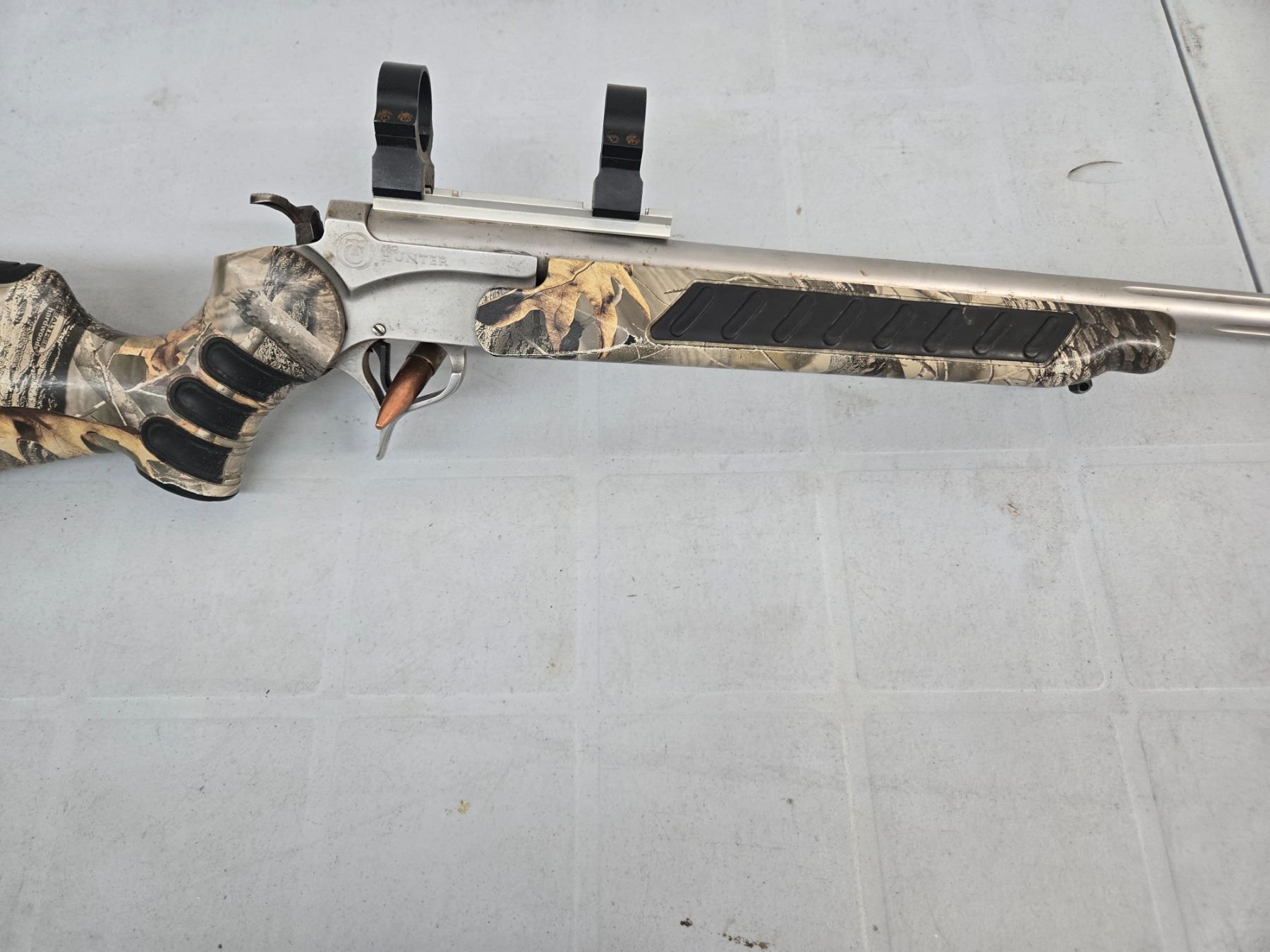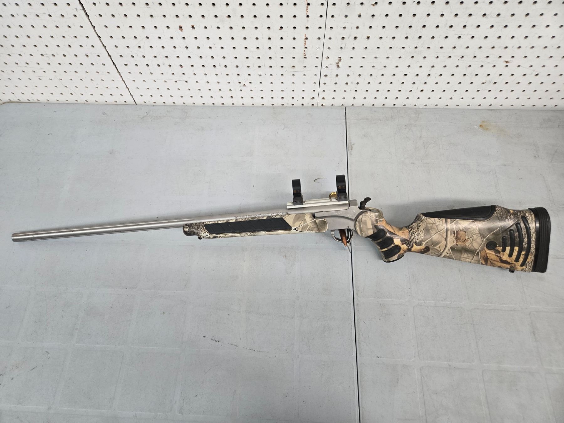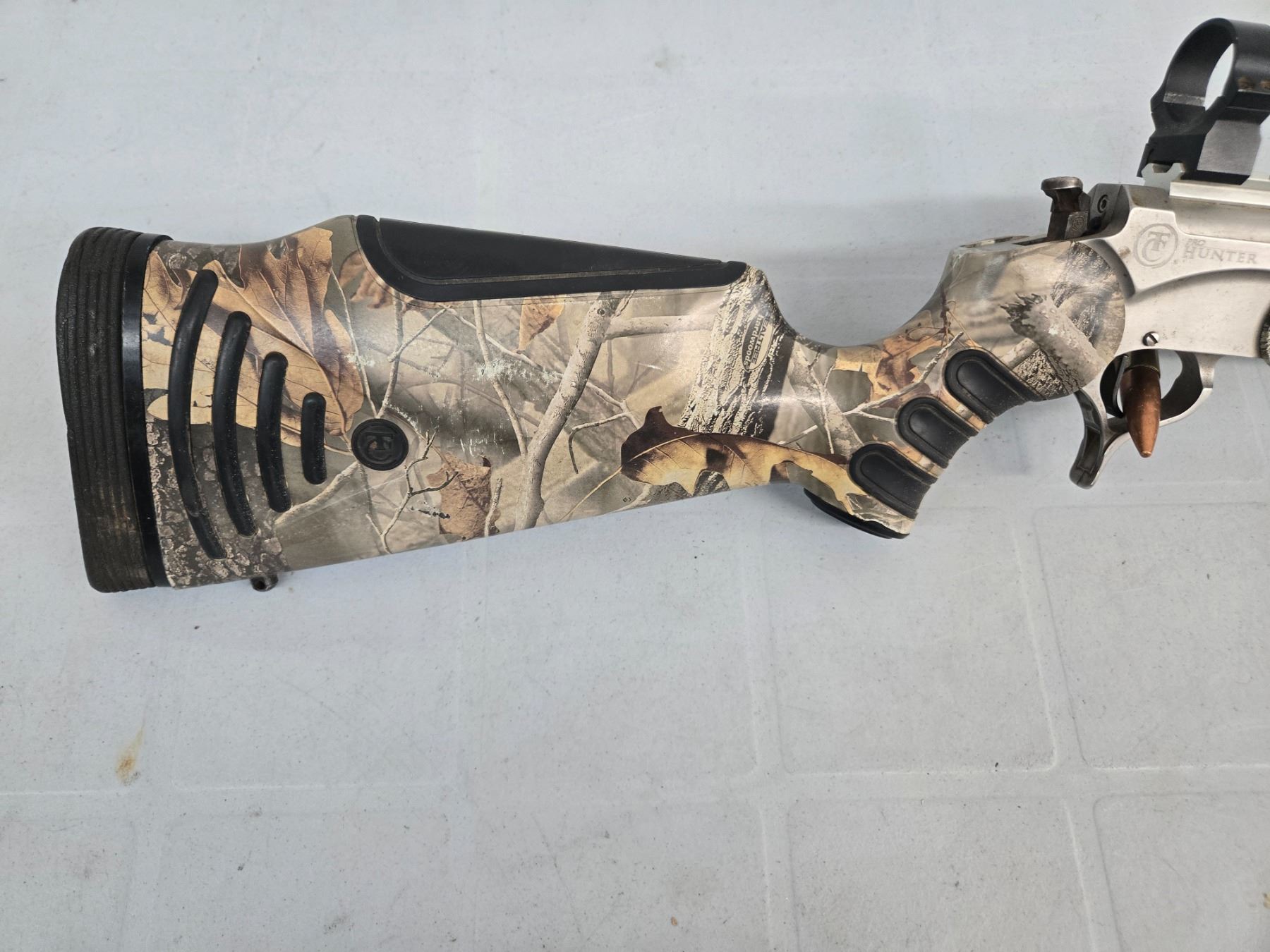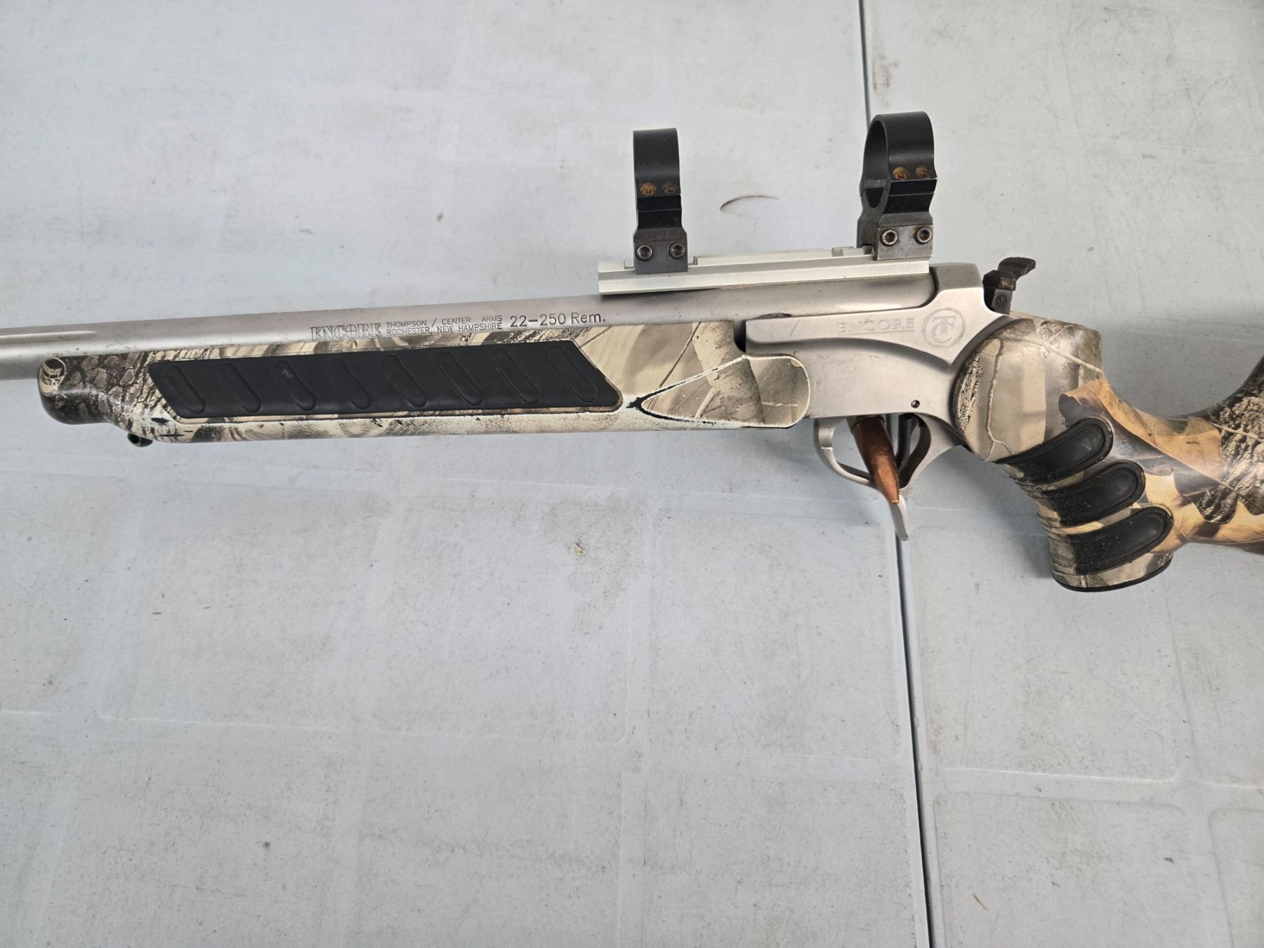 Crack Barrel. Both barrel sets retain all there original finish with a few scraps and scuffs here and there. Action functions as it was designed. Rifling on both barrel sets is like new. Finish on the stock of the 22-250 barrel set is worn. 50cal barrel set has very good finish on its fore stock. 22-250 comes with scope rings, 50 cal barrel set comes with a leupold Ultimate slam 3-9x40 scope.