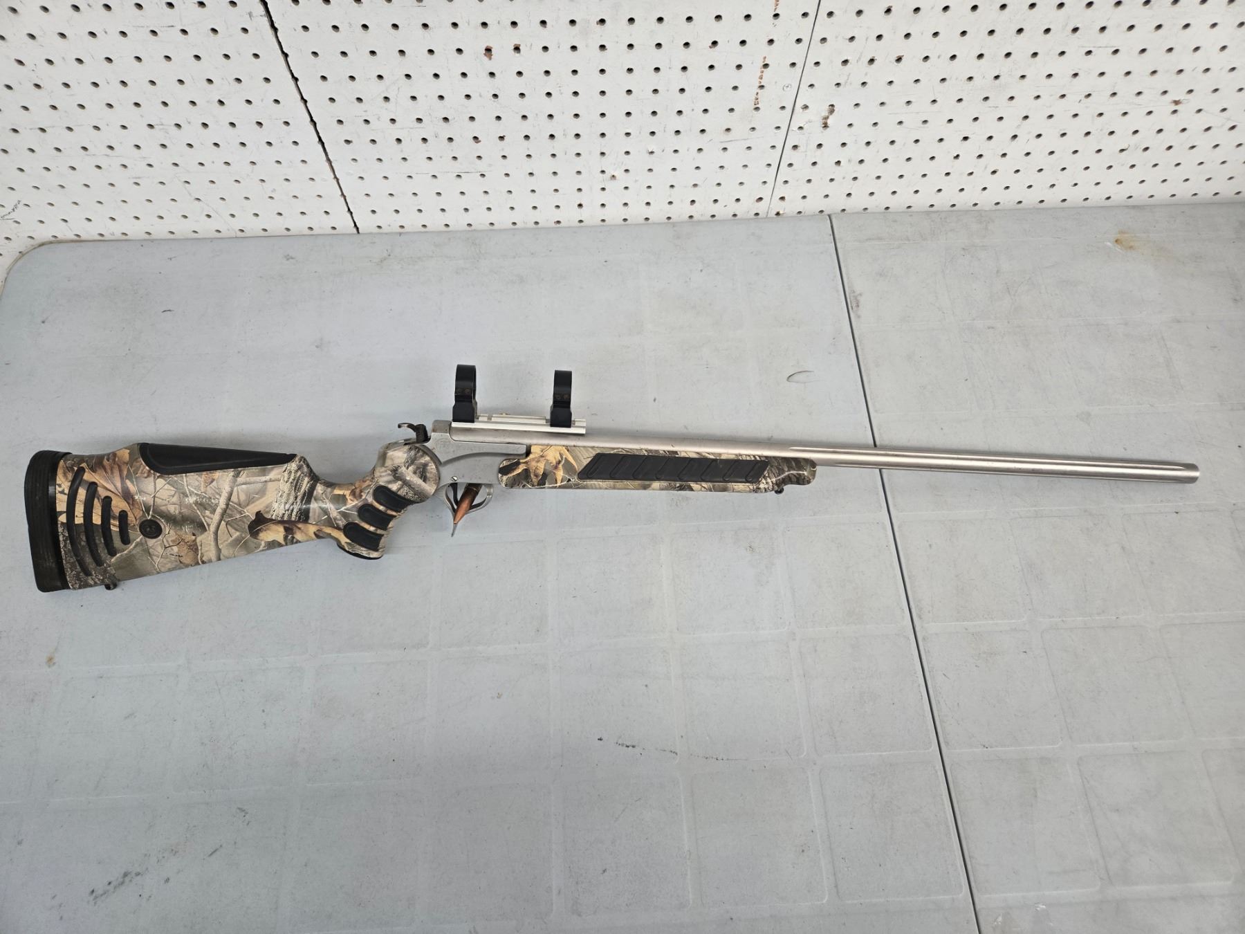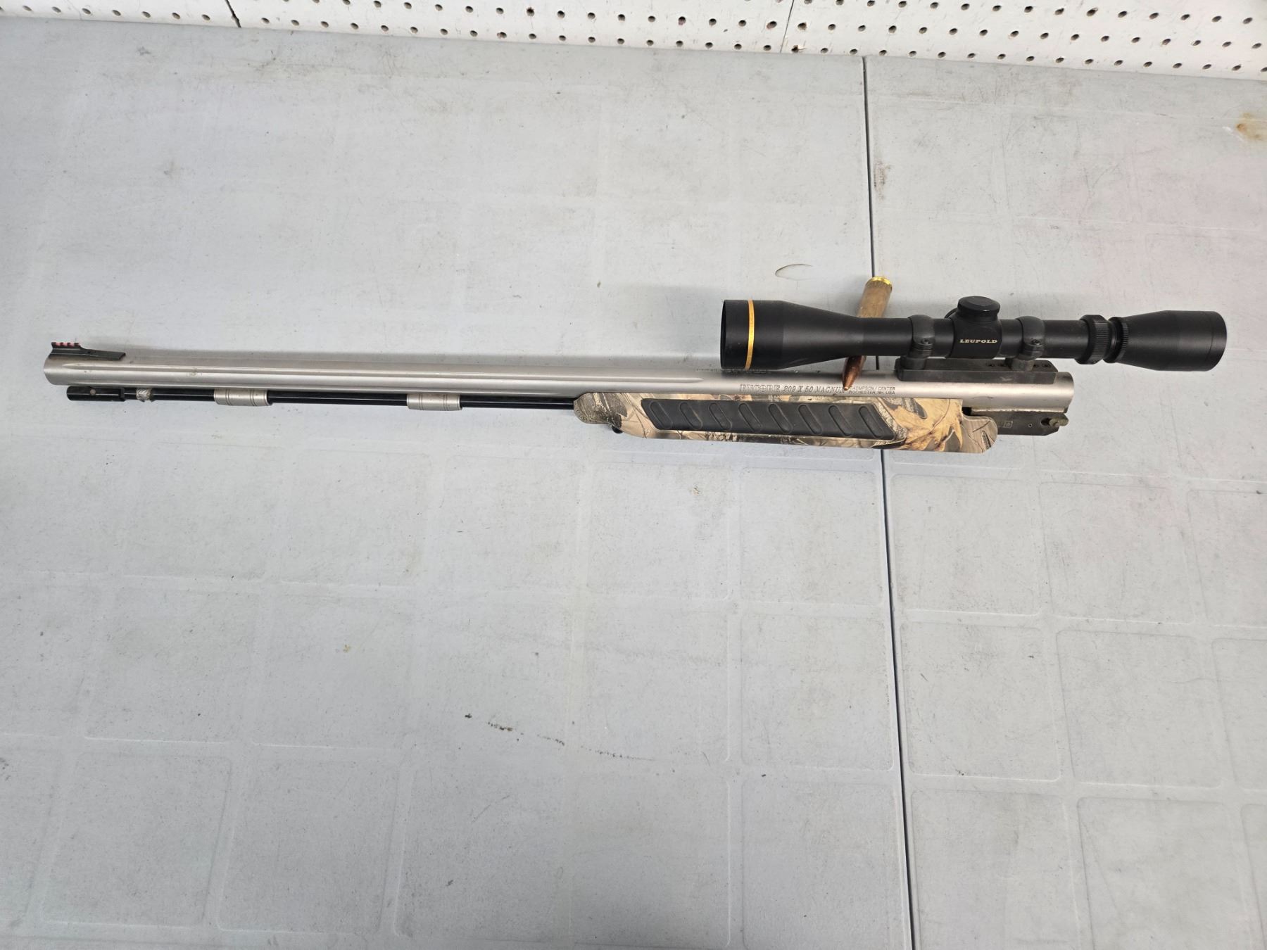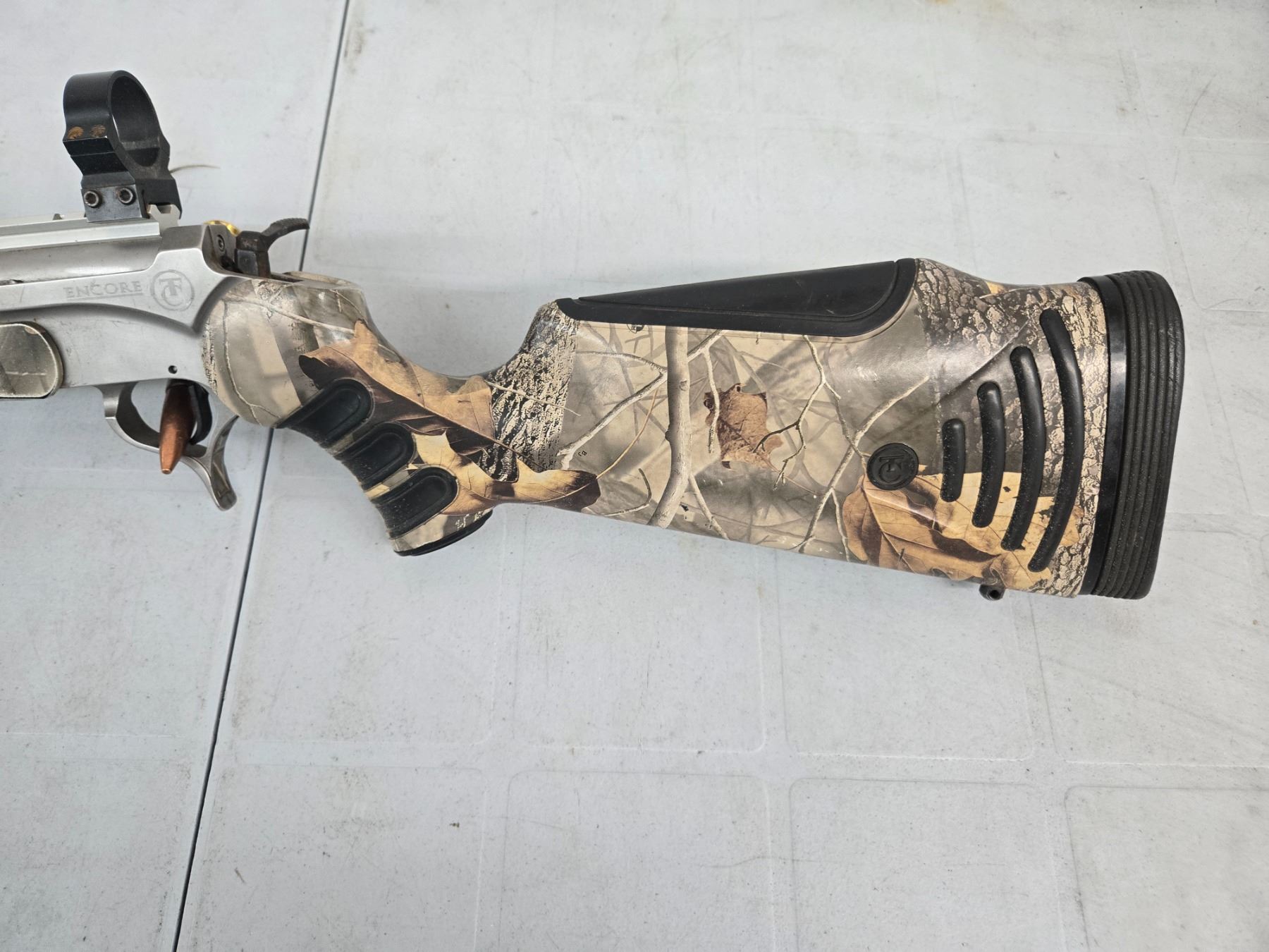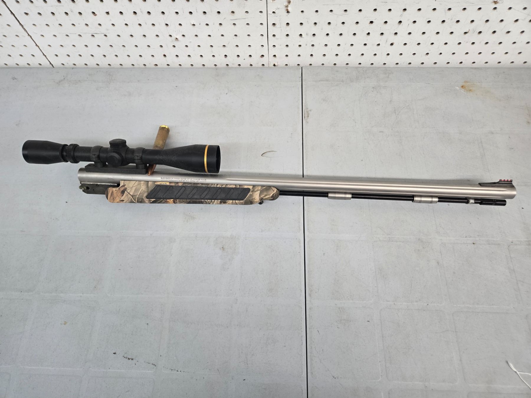 Crack Barrel. Both barrel sets retain all there original finish with a few scraps and scuffs here and there. Action functions as it was designed. Rifling on both barrel sets is like new. Finish on the stock of the 22-250 barrel set is worn. 50cal barrel set has very good finish on its fore stock. 22-250 comes with scope rings, 50 cal barrel set comes with a leupold Ultimate slam 3-9x40 scope.
