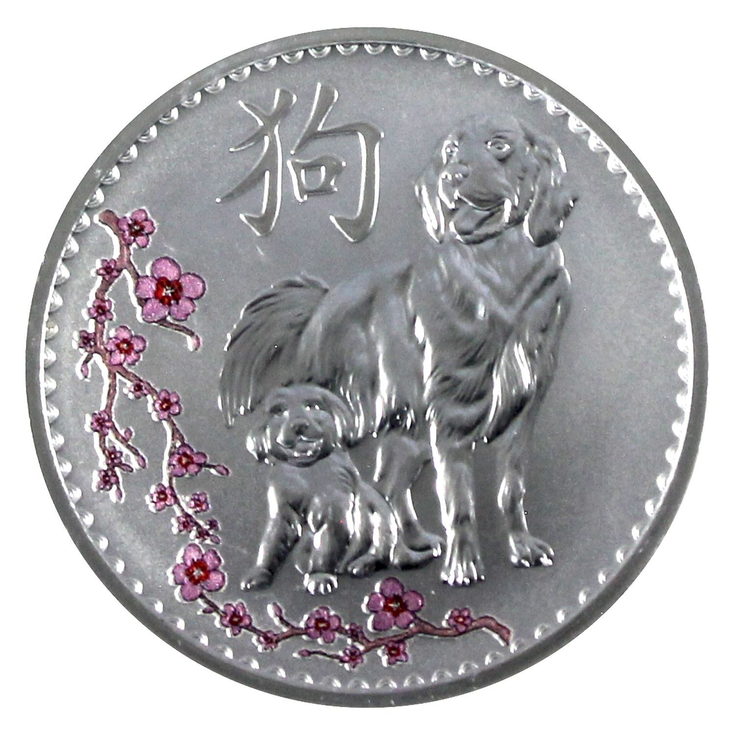 TD Bank 1oz Year of the Dog Lunar Coloured Commemorative .999 Silver Round in capsule (Scratches on capsule). Tax Exempt