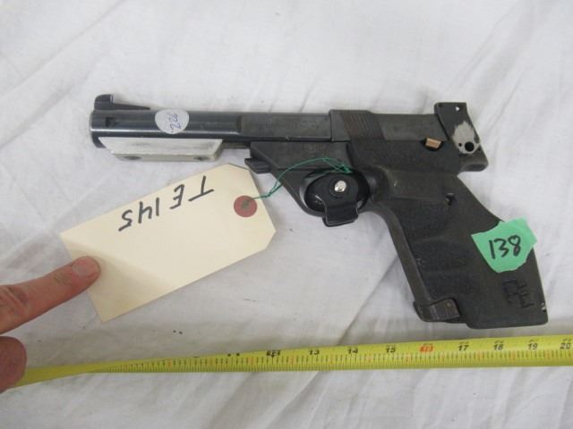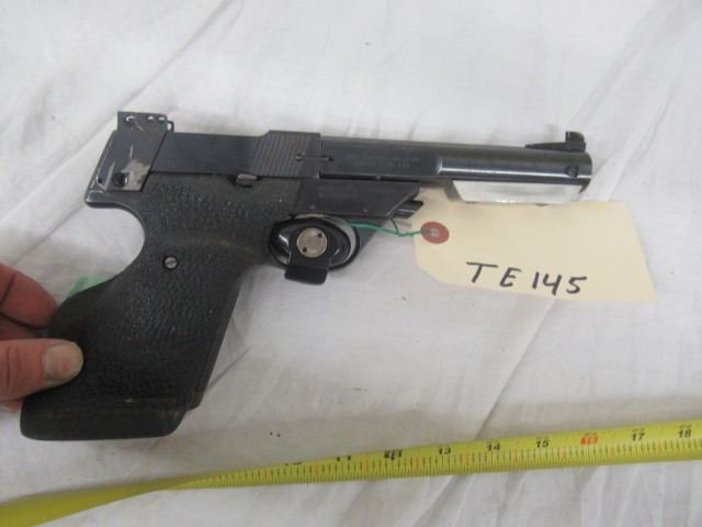 TE145 High Standard Supermatic Trophy 107 Military SA 22 LR w 1 Clip No Back Sight - Homemade Target Grips Weight Added to Barrel, Grind Marks on Back Sight Guard S# 2046646