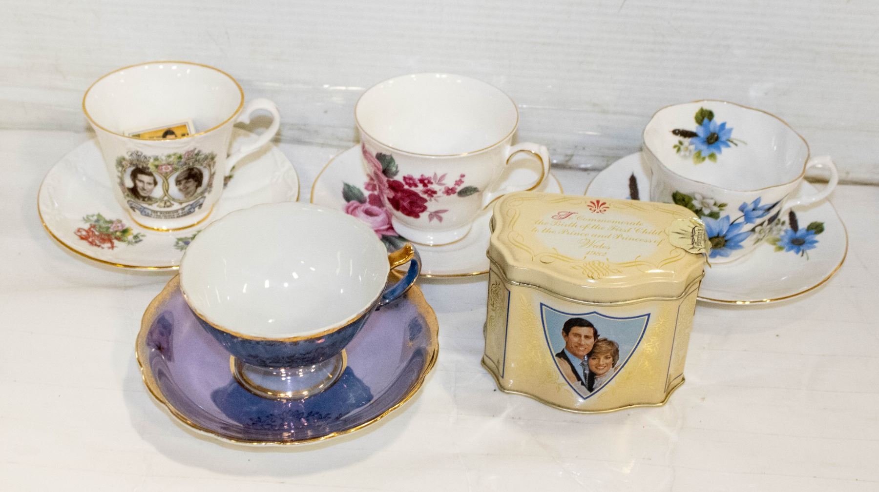 TEA CUPS & SAUCERS, PRINCESS DIANA&CHARLES TEA TIN
