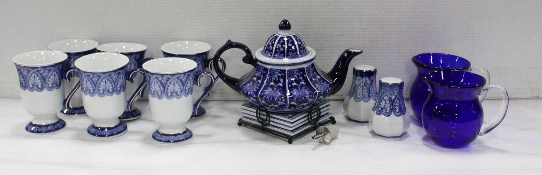 TEA SET & MUGS WITH CONDIMENT SERVERS
