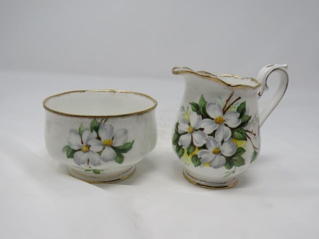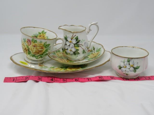 TEACUP, SAUCER, PLATE, CREAM & SUGAR (ROYAL ALBERT)