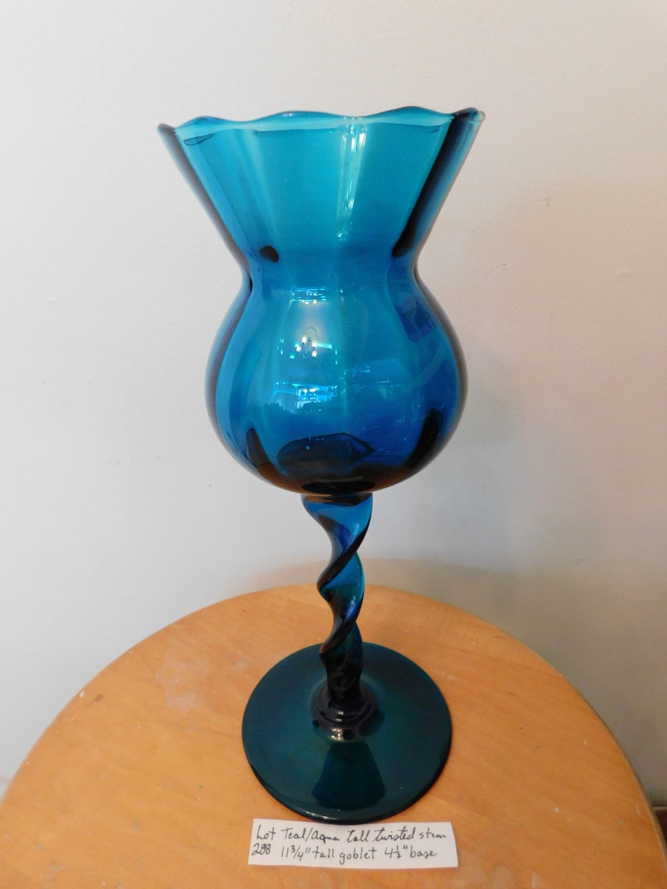 TEAL/AQUA TALL TWISTED STEM GOBLET/VASE
