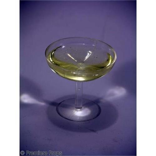 Clear palstic hero wine glass w/ jello like substance to make it look like white wine (approx. 1.8" long & 2" in diameter)