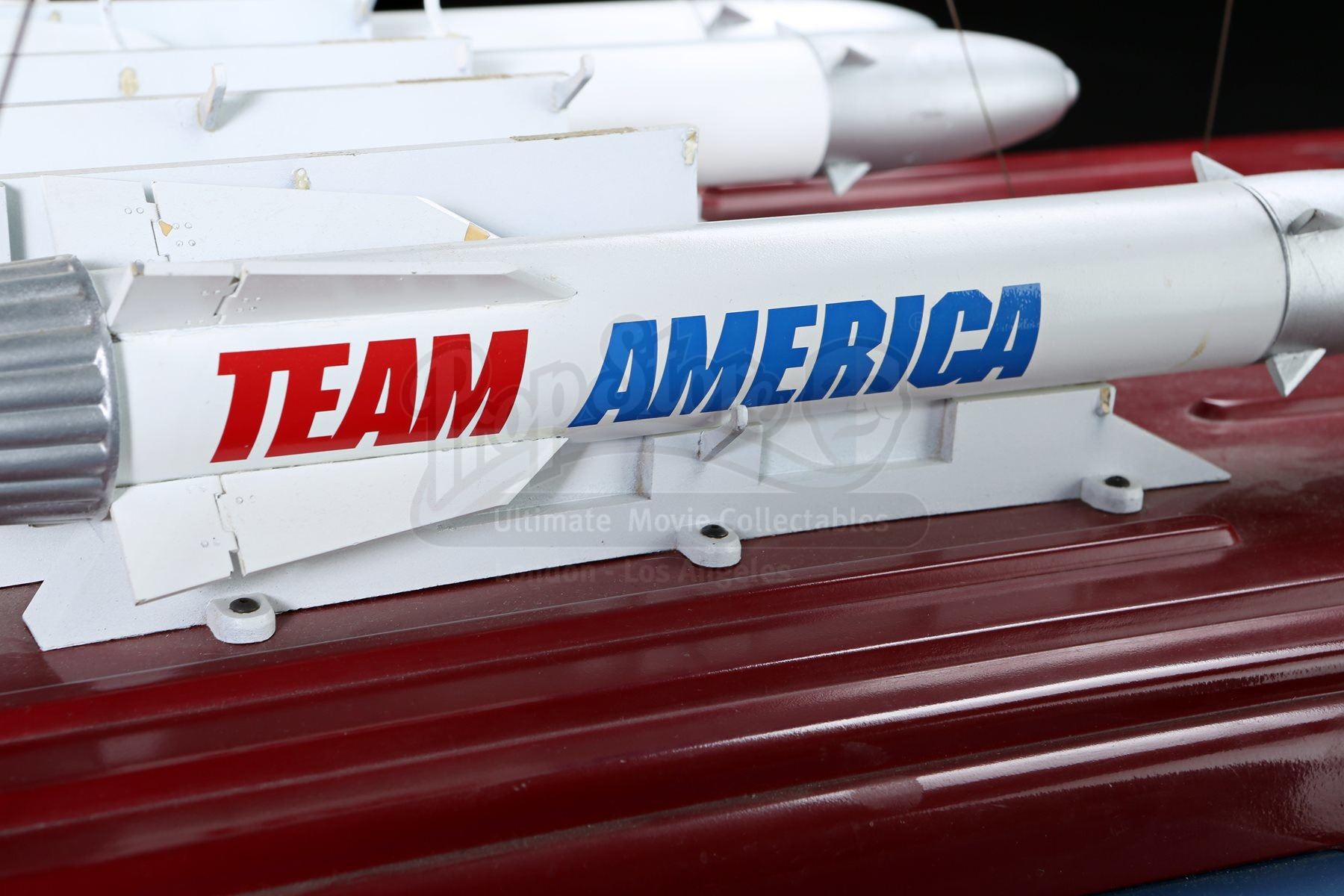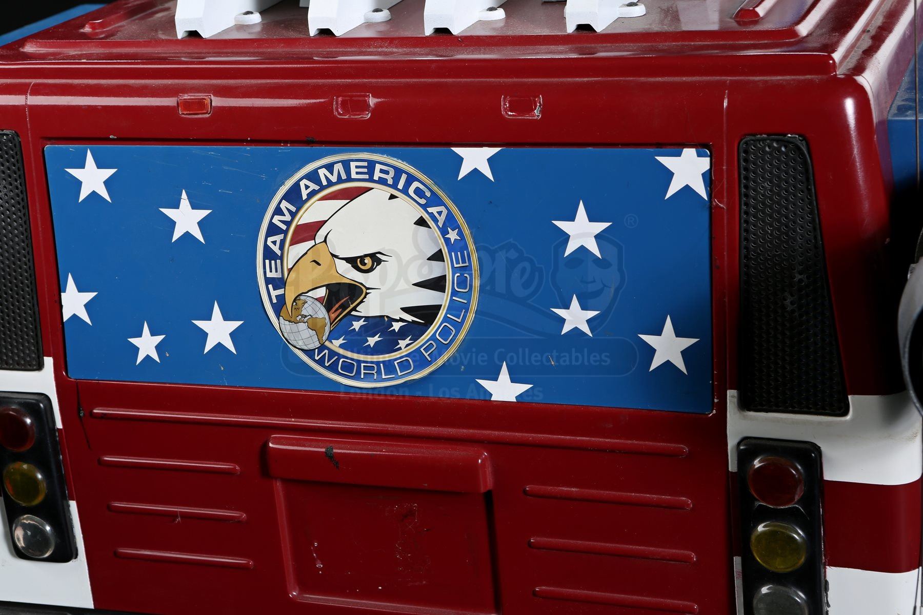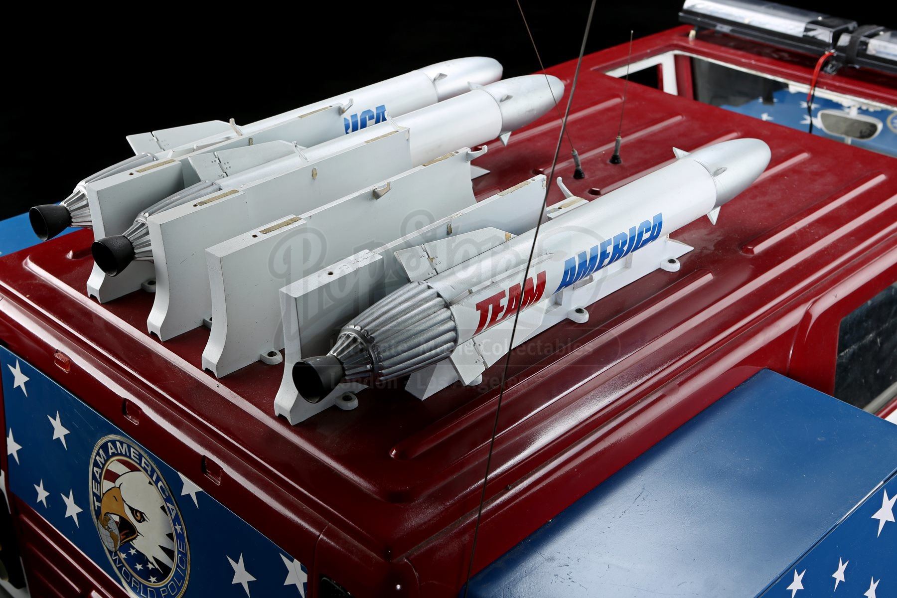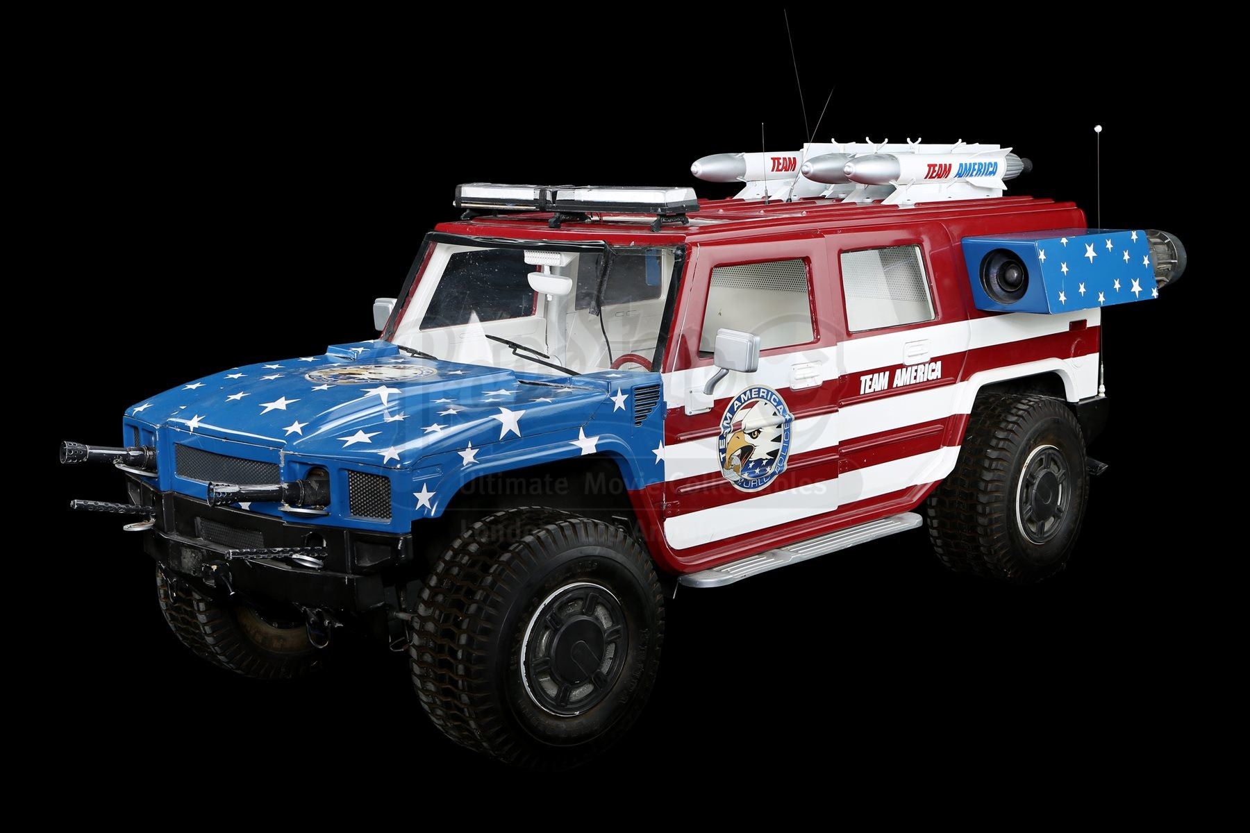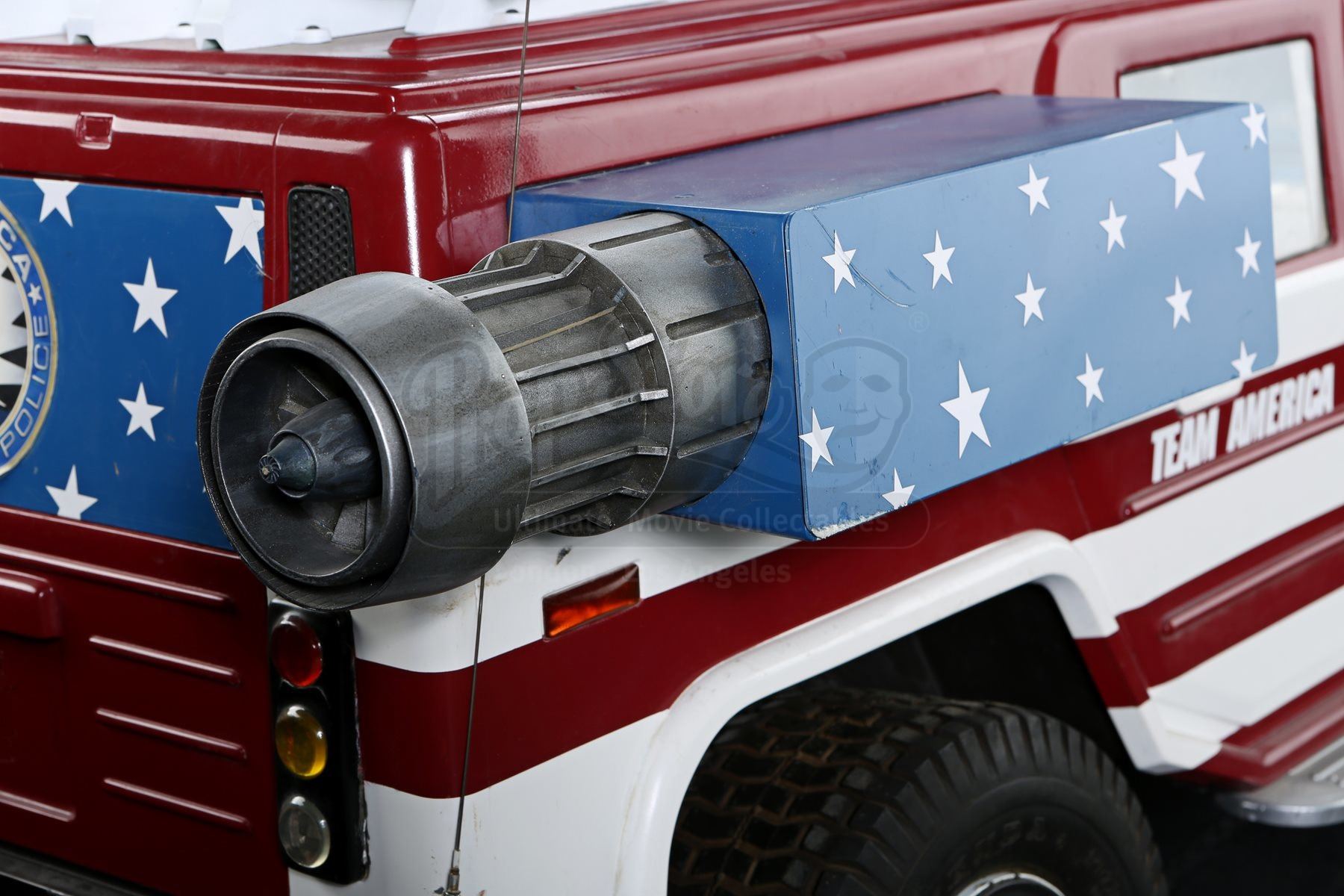 A Team America Hummer H2 model miniature from Trey Parker’s action comedy Team America: World Police. Performed by marionette puppets, the film followed Broadway actor Gary Johnston (Trey Parker) who was recruited by the elite counter-terrorism organisation Team America. The group deployed a Hummer while they chased enemy operatives through the streets of Egypt.