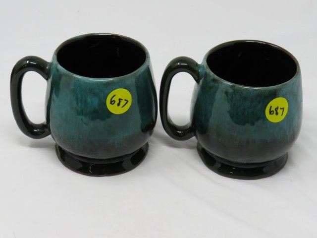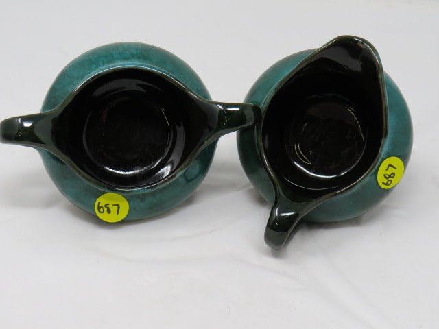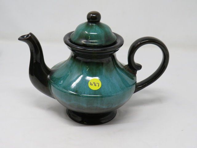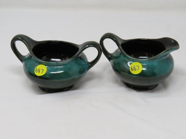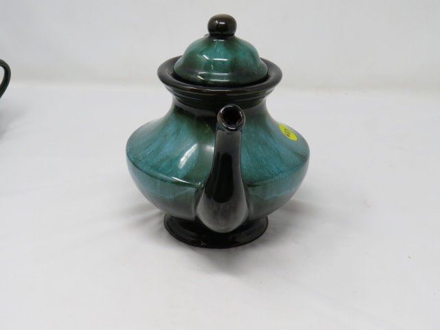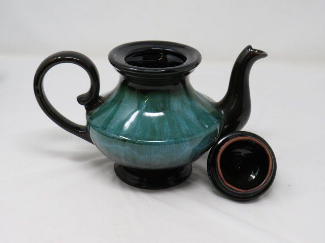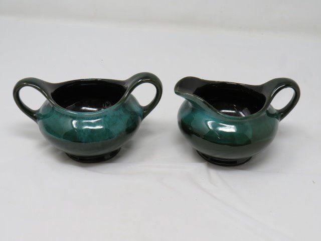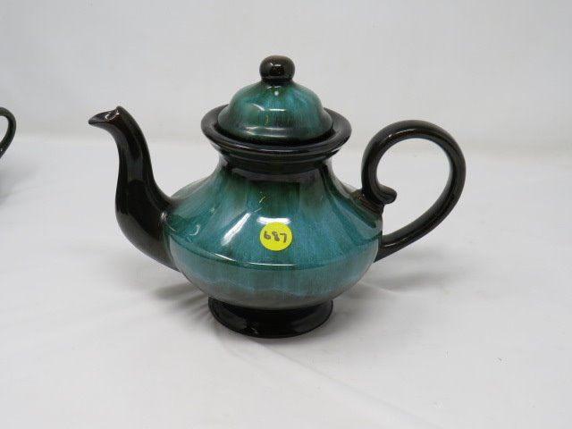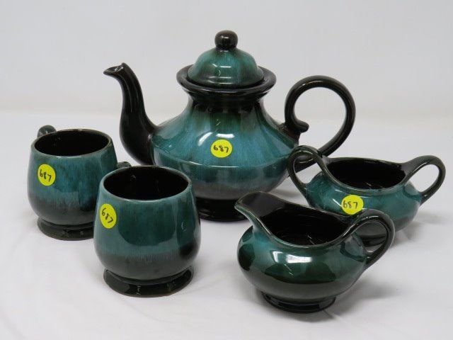 TEAPOT (BLUE MOUNTAIN) W/CREAM SUGAR & 2 CUPS (EVANGELINE, MADE IN CANADA)