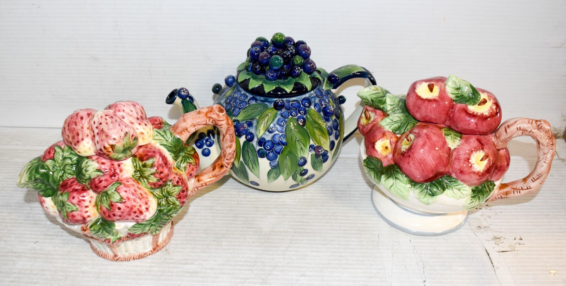 TEAPOTS- LOT OF 3 ASSORTED FRUIT THEMED