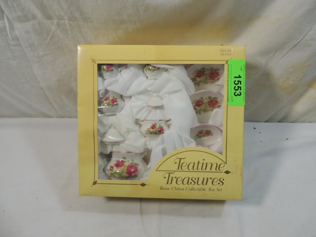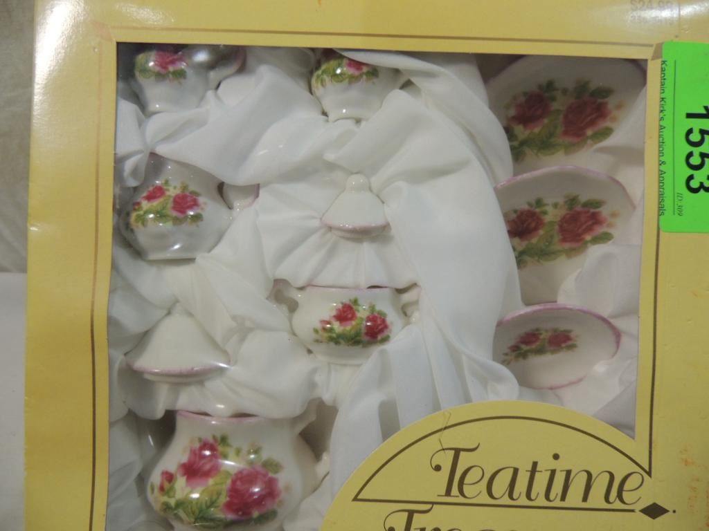 TEATIME TREASURES BONE CHINA COLLECTIBLE TEA SET. ROSES TINY TEA SET, VINTAGE COLLECTIBLE AS SHOWN SEE PHOTO FOR MORE DETAILS.