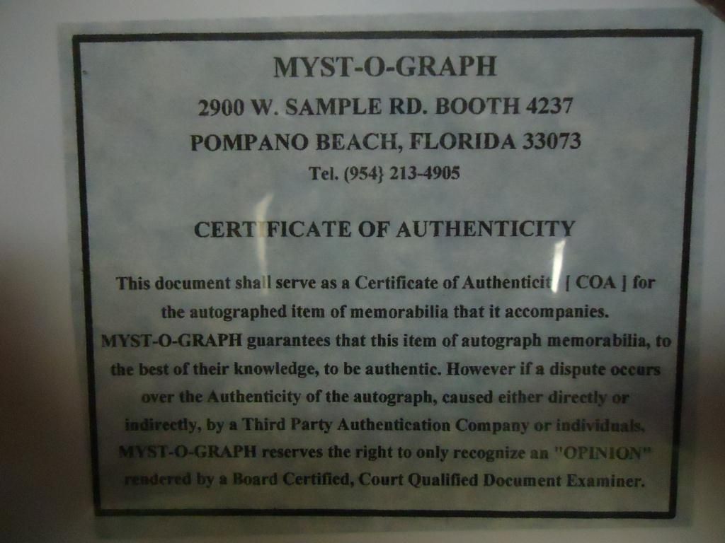 BEING SOLD AS IS, PLEASE USE YOUR OWN JUDGEMENT. CONTACT 1-954-974-1104 AT AUTOGRAPHED LEGENDS WITH ANY QUESTIONS ABOUT THEM, THIS IS THE PERSON WHO AUTHENTICATED THEM. WE ARE NOT AUTOGRAPH EXPERTS AND CANNOT GUARANTEE THEM OURSELVES.