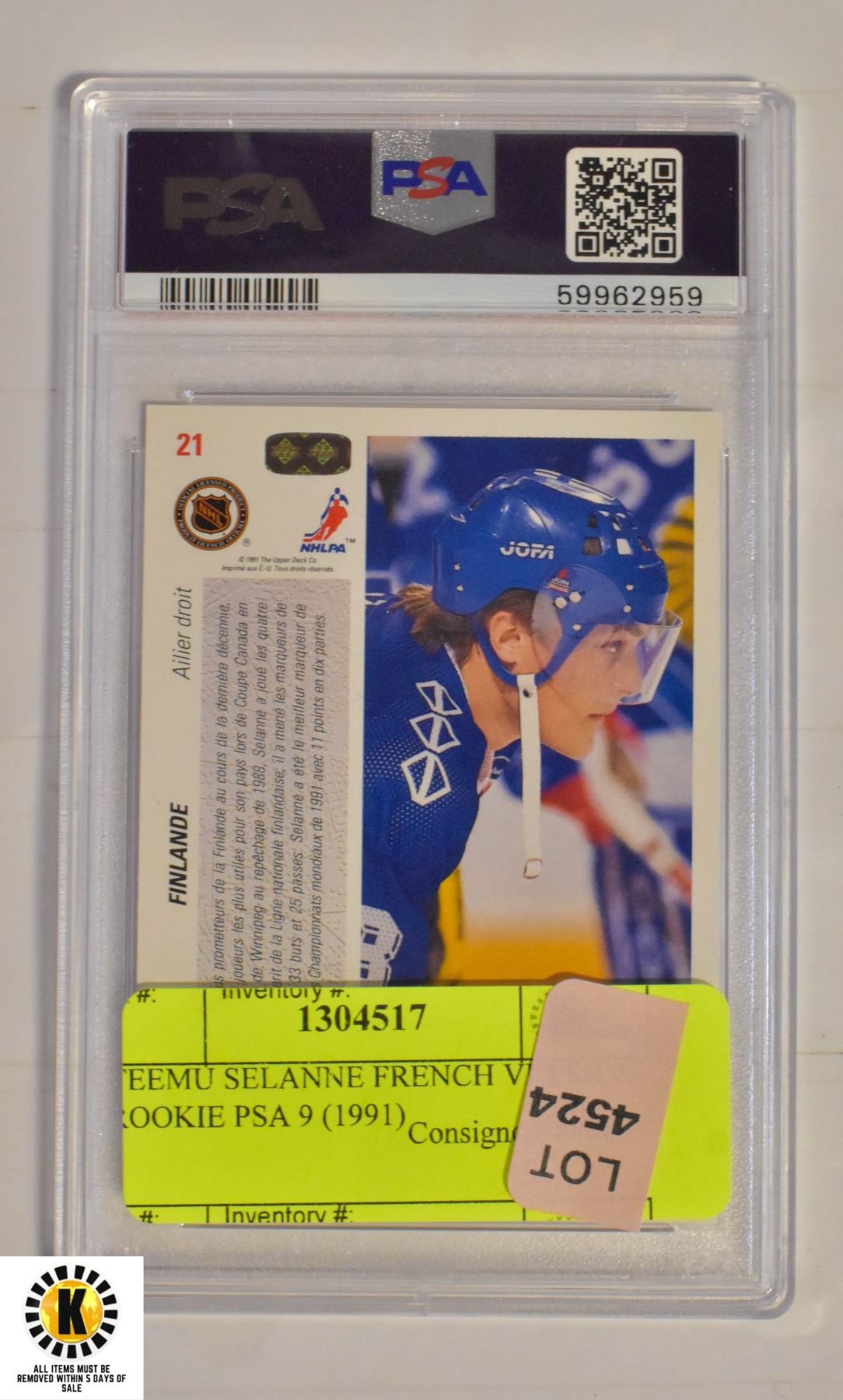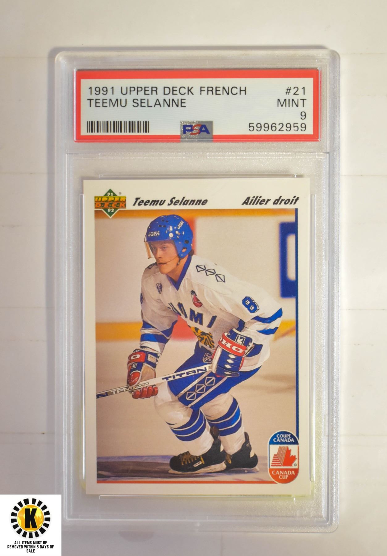 TEEMU SELANNE FRENCH VERSION ROOKIE PSA 9 (1991)